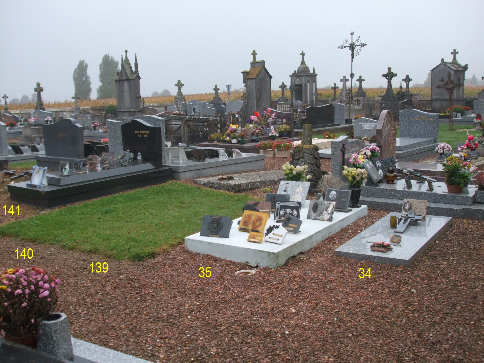 Si vous laissez la souris sur un numéro, alors apparait l'allée de cette tombe